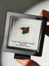 ✦ Pyrop (Granat Typ), Chromdiopsid (grün), mit Enstatit (gelbgrün) Scheibe in Schweberahmen
